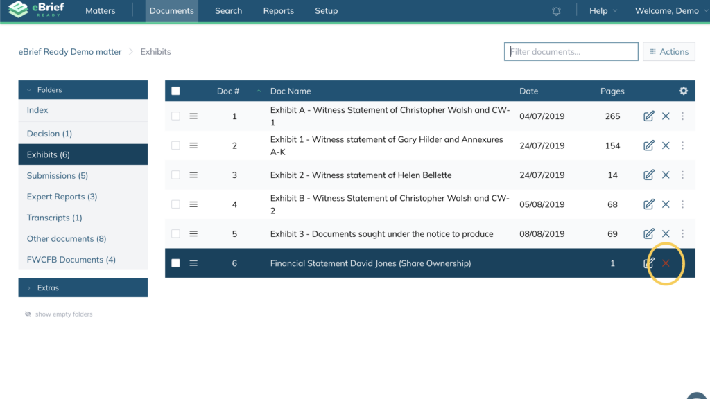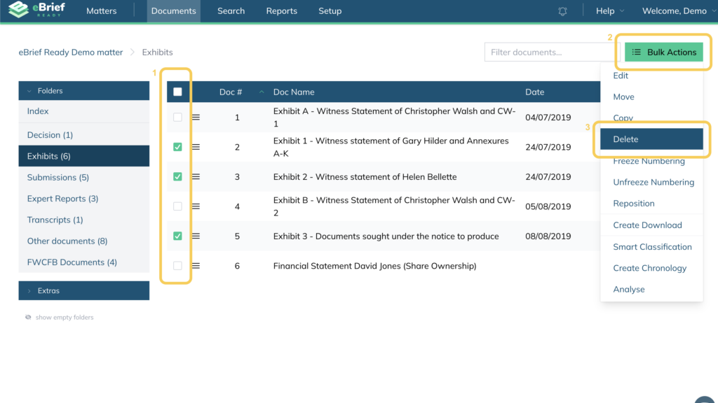 In eBrief Ready, you can delete documents individually or in bulk.